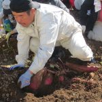 秋晴れの中、西海小学校の皆さんと育てた、さつまいもを収穫しました。