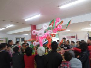 開所日の互隣の家ではビンゴゲームでお祝いムードを盛り上げて楽しんでいました。